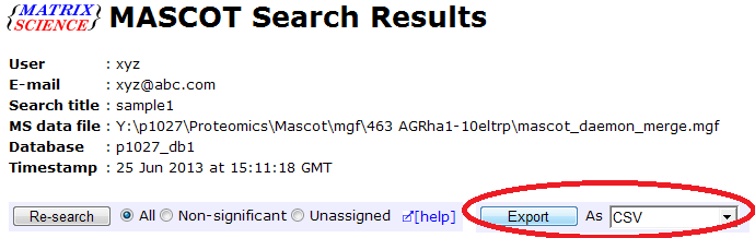 Then you can filter the peptides and proteins (e.g. by ionscore) and export to a CSV file.